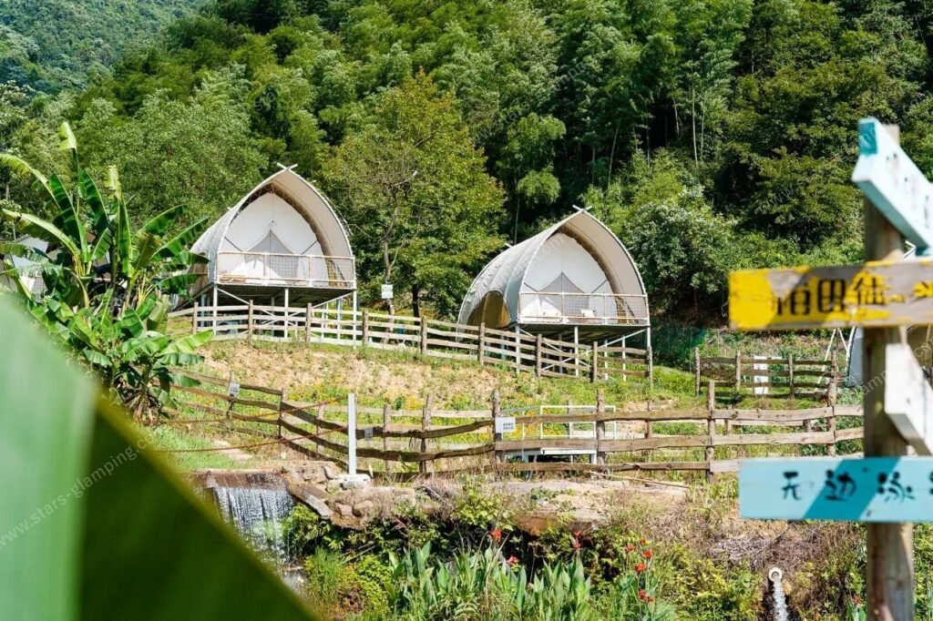 This glamping project is located in a serene suburban region of Hunan, where lush mountains, fresh air, and flowing streams create a naturally calming environment. Stars Glamping supplied 12 units of Safari Tent – Jupiter, forming a boutique outdoor accommodation cluster designed for travelers seeking a peaceful escape. The tents sit on carefully selected plots that maximize views of the surrounding greenery while maintaining privacy, blending comfortably into the landscape to provide a close-to-nature lodging experience.