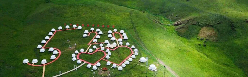 SL Star Dome Glamping Tent Camp is located in the Northwest of China, is the only high-end resort hotel in Happy Valley. The scenic spot is located in Happy Valley, surrounded by colorful slide, tube rail slide, go-kart and other experience projects, creating an overall atmosphere of fashion, youth and fun.High above the hills and between the fertile fields, the glamping domes spot in the north and south of the border offer stargazers an excellent view of the stars, allowing people to find the fairy tale of the stars and moons in their dreams.