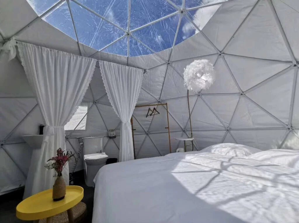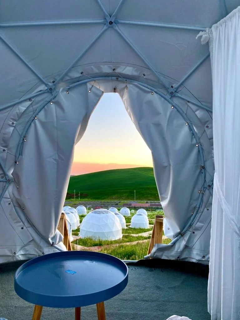 SL Star Dome Glamping Tent Camp is an early introduction of star glamping dome tent scenic area in Xinjiang. The first 30 star glamping dome tents were introduced here in 2018, and the number has increased to 62 this year. At the same time, the geodesic star dome tent is equipped with an independent bathroom, and a star bar that can accommodate about 60 people is also built to create an excellent experience. Stars Tent geodesic domes allows you to experience the fun of returning to nature in a camping way and experience the unique camping culture and life style.