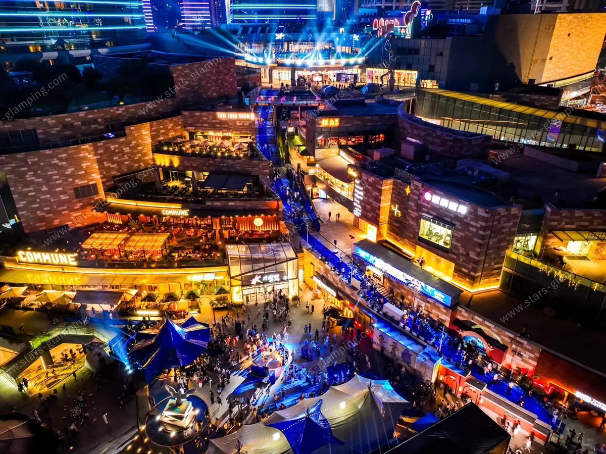 Inspired by traditional Indian safari architecture, the Indian Safari Tent combines classic fabric structures with modern engineering. Its signature peaked roof and extended canopy create an iconic silhouette that naturally complements Changsha’s tropical-mountain climate.
