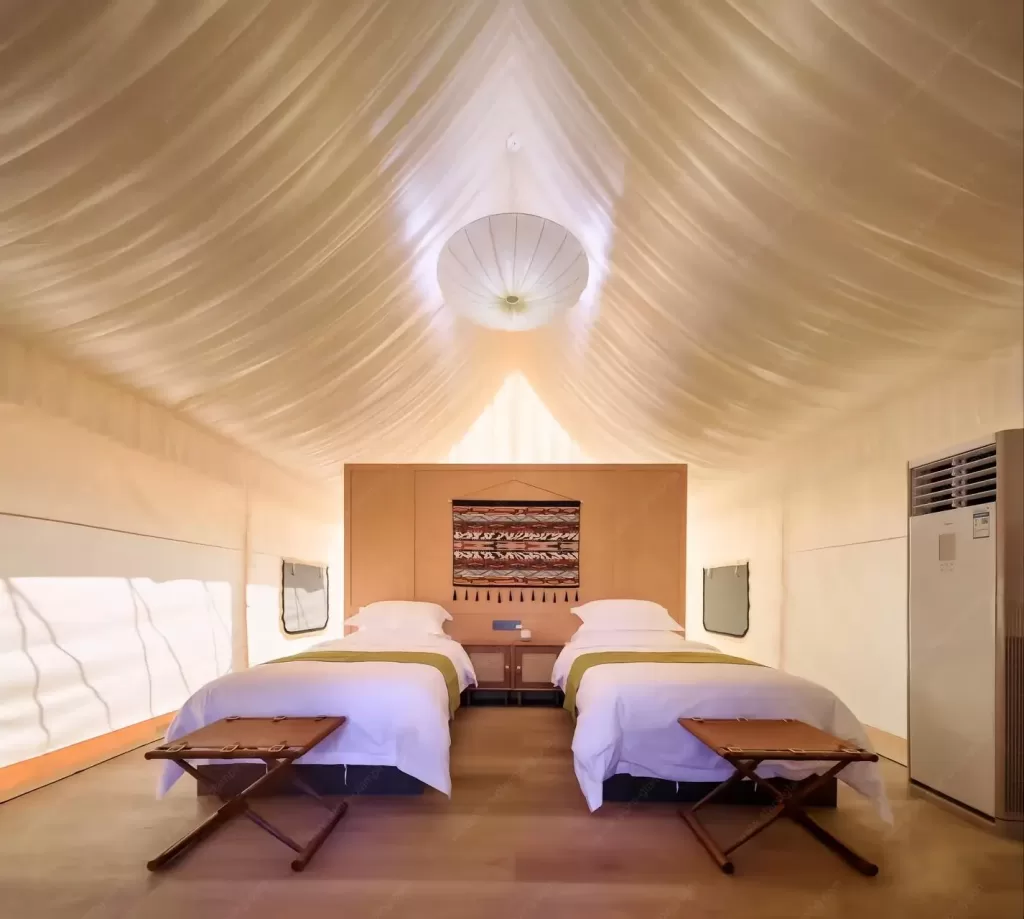 A Deluxe Eco Hotel Tent – Poetry And Romance. At Saishang Forest City, you have come to the right place for a unique glamping experience! We were proud to be given a chance to supply glamping tents for this amazing project. In 2021, we installed the 70 units Safari Tent – Superstar and 30 units Luxury Tent – Hexagon.