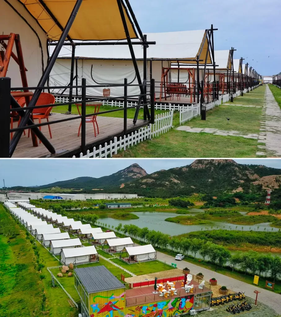 Let’s check luxury canvas safari tent on the beach! On summer nights, what an experience it is to watch the milky way starry in the night sky with friends or family, listen to the mountain breeze and the sound of waves, and fall asleep on a bed comparable to a star hotel! TLZ has created a new campground with a wide range of facilities and amusement programs, which is definitely worth an all-round in-depth experience for glamping enthusiasts.