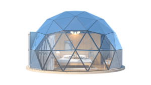 The main luxury geodesic dome home in this resort are the romantic tents camping outdoor and tiendas de safari provided by Glamping de estrellas. Total 20 luxury glamping dome tents are distributed at the highest point of the resort. The tienda domo glamping covers an area of about 28 square meters, with a 1.8m large bed, hemispherical appearance, transparent glass windows, built-in independent bathroom, air conditioning, and is located at the highest point. close to the top of the sky,Lying on the big bed, through the transparent floor-to-ceiling windows of the luxury geodesic dome home, you can see the morning sunshine in the morning and the starry sky at night.