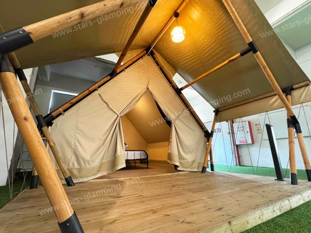 As a professional tent manufacturer, we offer full support from design consultation to global delivery and installation. The Safari Tent – Vega is a popular choice among glamping operators for its cost-effectiveness, simple elegance, and guest-friendly layout.