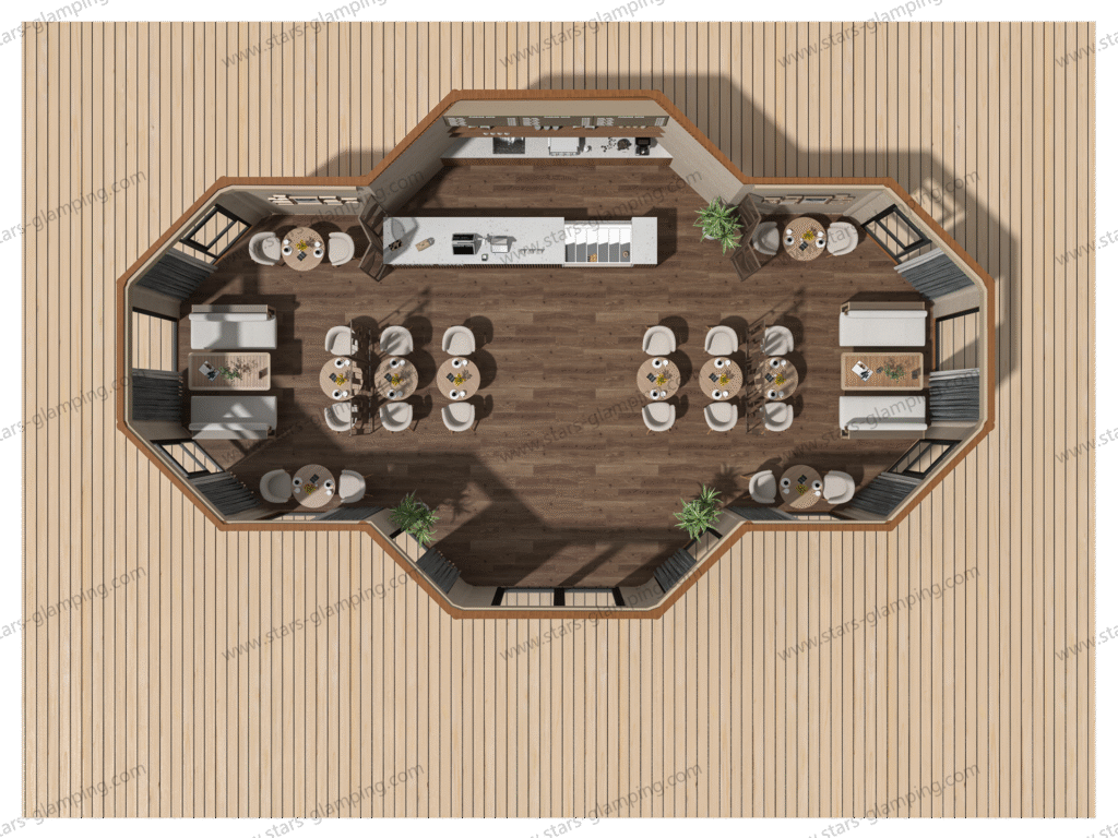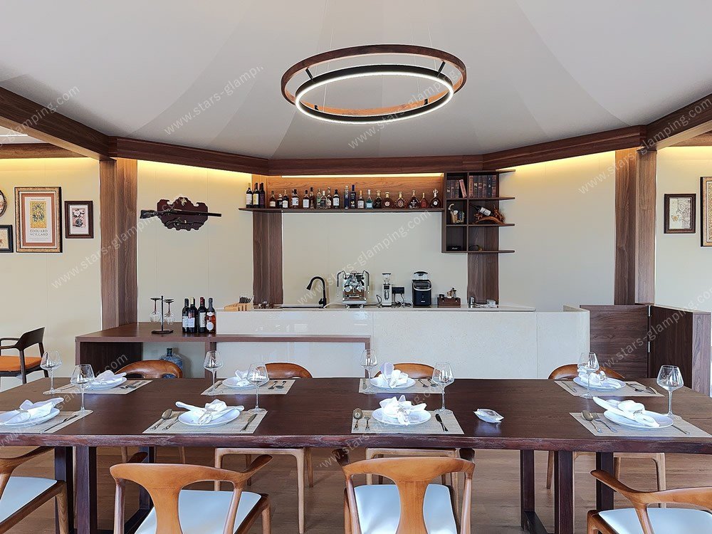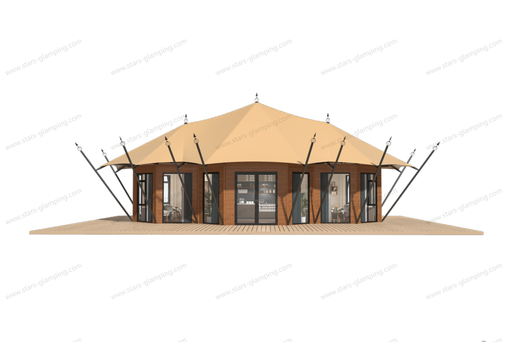 Luxury Tent – Cloud is a high-end, architectural glamping structure crafted for premium hospitality spaces such as eco-resorts, boutique campgrounds, and outdoor destination hotels. With an expansive 68 square meters of interior space, the Cloud Tent offers versatile functionality, making it ideal for use as a glamping cafe, reception center, outdoor restaurant, or event lounge.