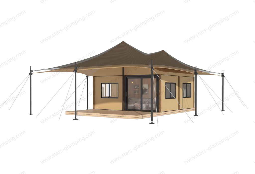 Ideal for luxury resort tent houses, eco-villa developments, and premium wilderness retreats, the Luxury Tent – Pisces offers unmatched durability and comfort. Whether establishing a new glamping camp or upgrading existing facilities, this hotel tent solution provides the perfect blend of natural charm and contemporary hospitality standards.