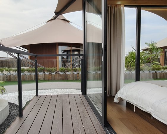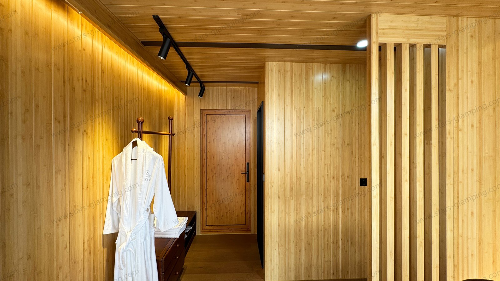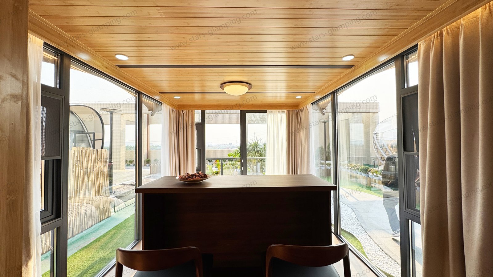 Constructed with a dual-layer roofing system – PVDF outer membrane and PVC inner lining – this luxury canvas tent provides excellent insulation, waterproofing, UV protection, and long-term durability. The tempered glass walls combined with a sturdy aluminum frame ensure strength, sound insulation, and guest privacy.