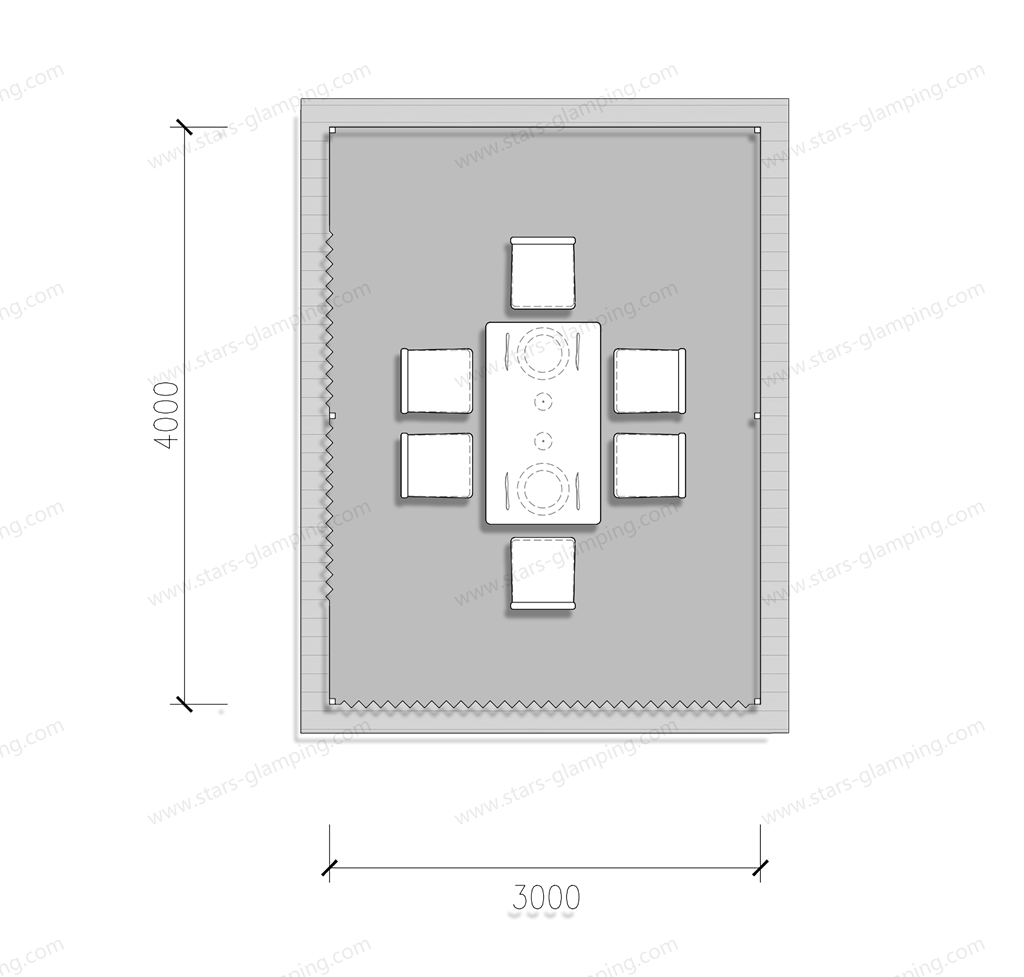The tent measures 3m x 4m, offering comfortable seating for 5-6 people. Its igloo-inspired design not only maximizes ventilation and natural light through large clear windows but also ensures privacy and safety, especially in outdoor or semi-public spaces. The curved half-dome tent structure reduces wind resistance and enhances the cozy ambiance.