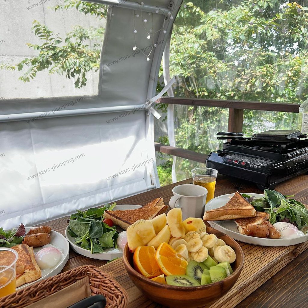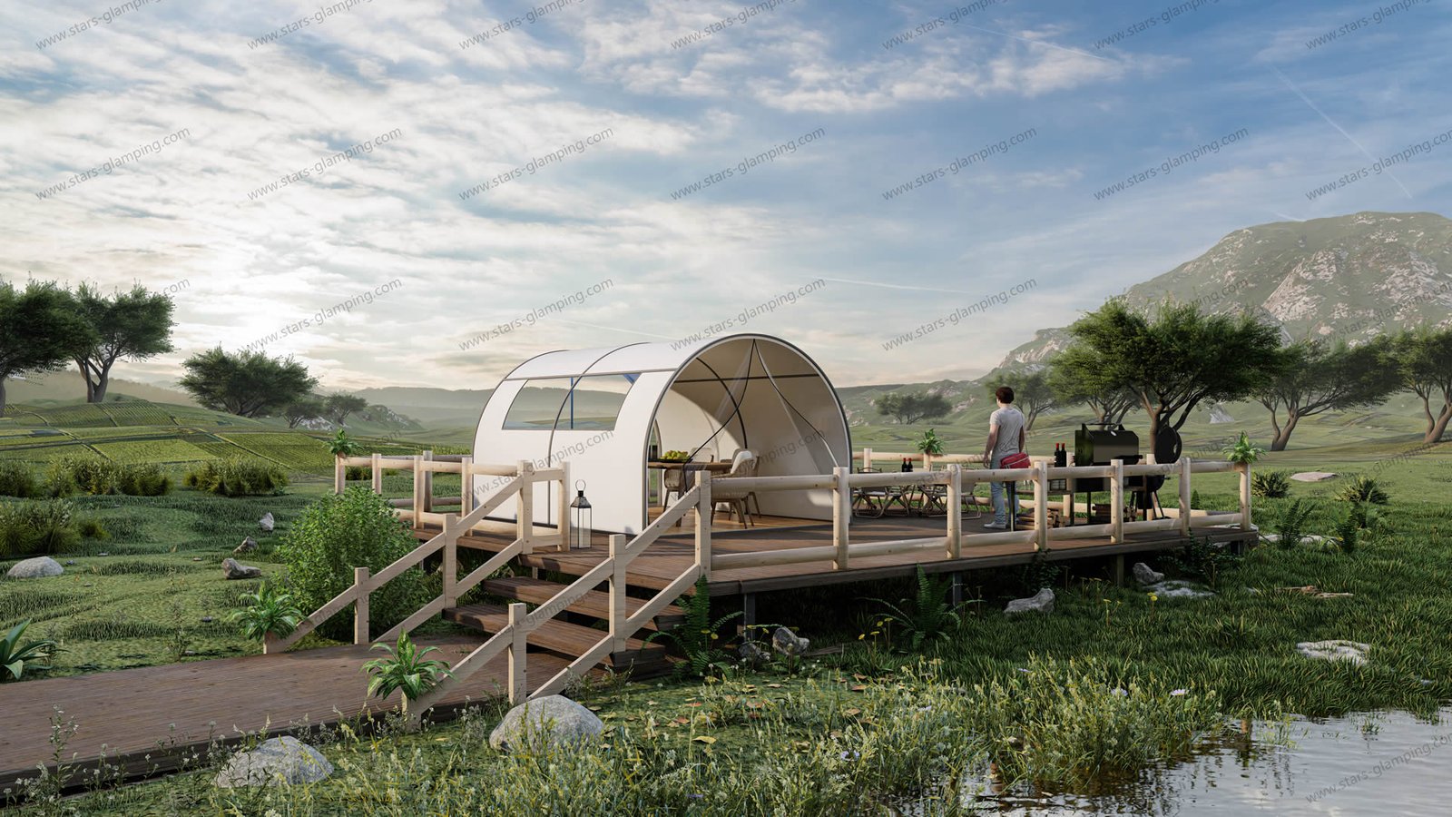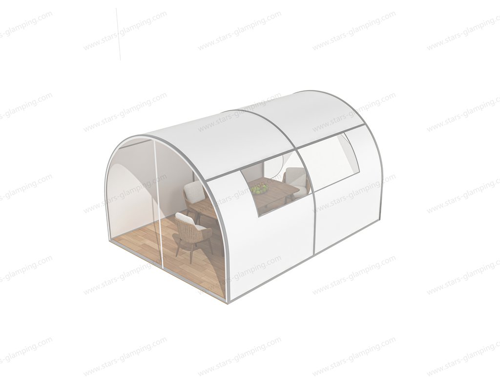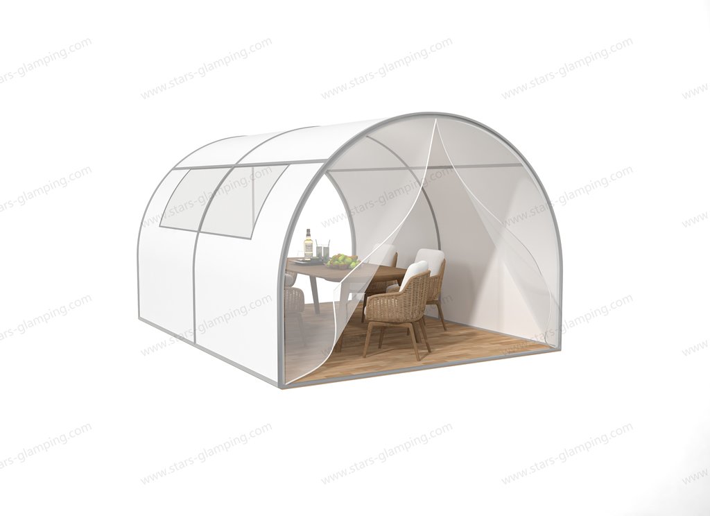 Ideal as a restaurant shelter tent or event dining dome, this outdoor pod can be equipped with heating lamps and LED lights to extend usage into cooler evenings. Perfect for glamping sites, cafes, or resorts looking to add attractive outdoor dining canopies that stand out from competitors.