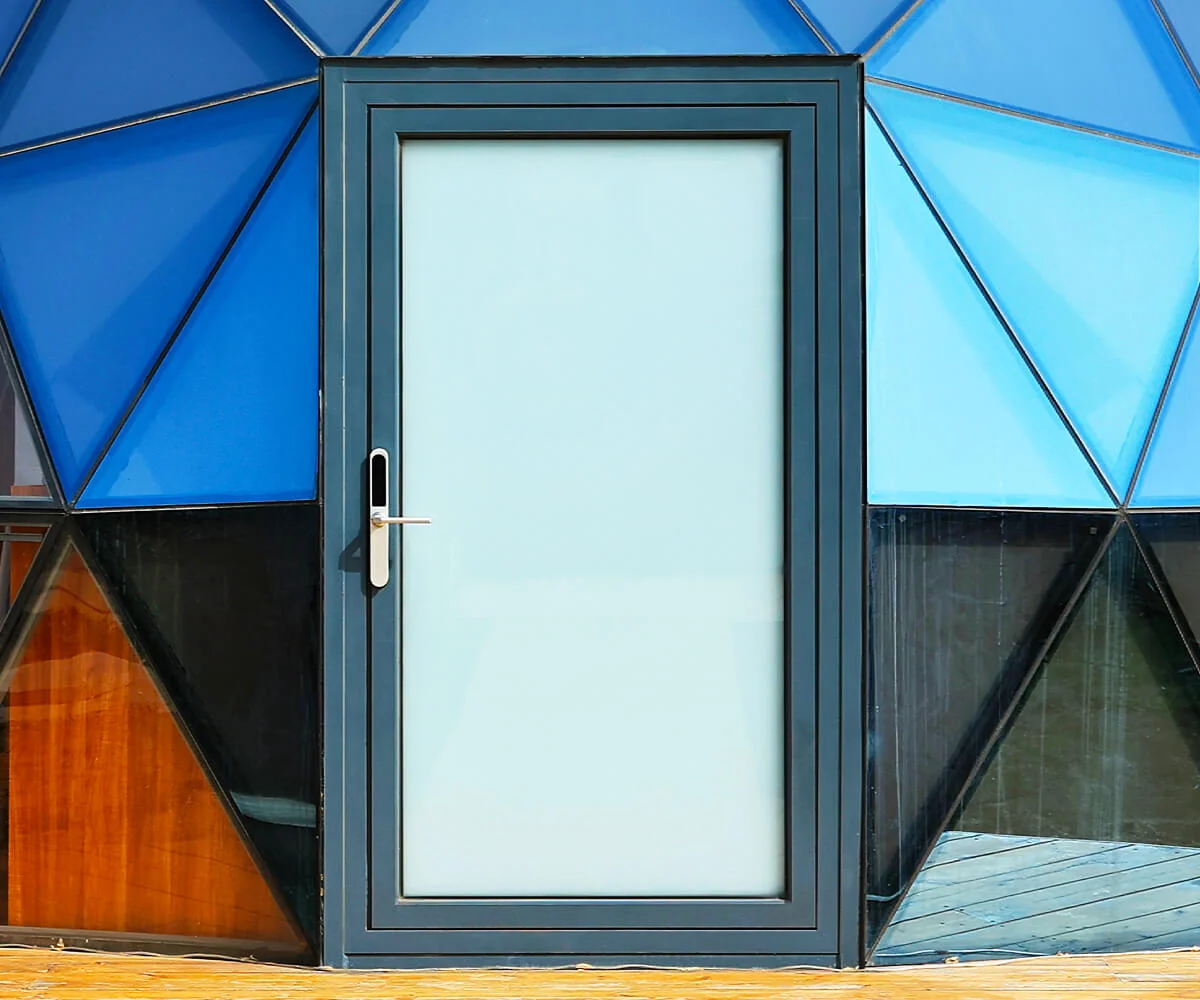 La tenda a cupola di vetro è una struttura a rete sferica composta da più triangoli, una struttura stabile. Utilizza vetro temperato laminato a strato singolo o doppio isolante, per garantire senza sacrificare la splendida vista panoramica. Permette agli ospiti di godere di una vista a 360 gradi del lucernario. È di colore blu o trasparente e lo spessore è di 5 mm.