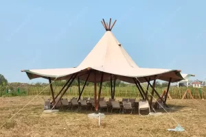 In addition to the furniture placement, there is a separate bathroom space, fitted with the appropriate equipment, which further enhances the guest’s tent stay experience. Guests can find the perfect spot to relax in the inviting interior of the glamping dome tent. A third of the transparent windows in camping tents allow you to see out even when you are indoors, and the transparent skylights in tents touch the starry sky anytime and anywhere at night. At this camp, experience nature by day and stay under the stars in a tent by night, offering your guests a unique vacation experience.. Offer the most amazing accommodations in a perfectly designed Stars Glamping. Your guests will find there all they need to disconnect from everyday life and relax.