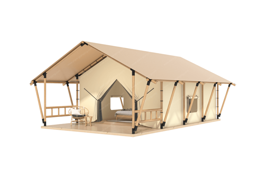 Luxury Safari Tent Lodestar são tendas grandes e espaçosas que foram projetadas inicialmente para estadias longas na natureza africana. Freqüentemente, têm muitos cômodos internos de acordo com o tamanho da barraca e são estruturas resistentes e rígidas. O mastro de madeira de uma barraca de safári é sua estrutura. A qualidade do material da estrutura não afeta apenas a vida útil da barraca, mas também a estabilidade da barraca.