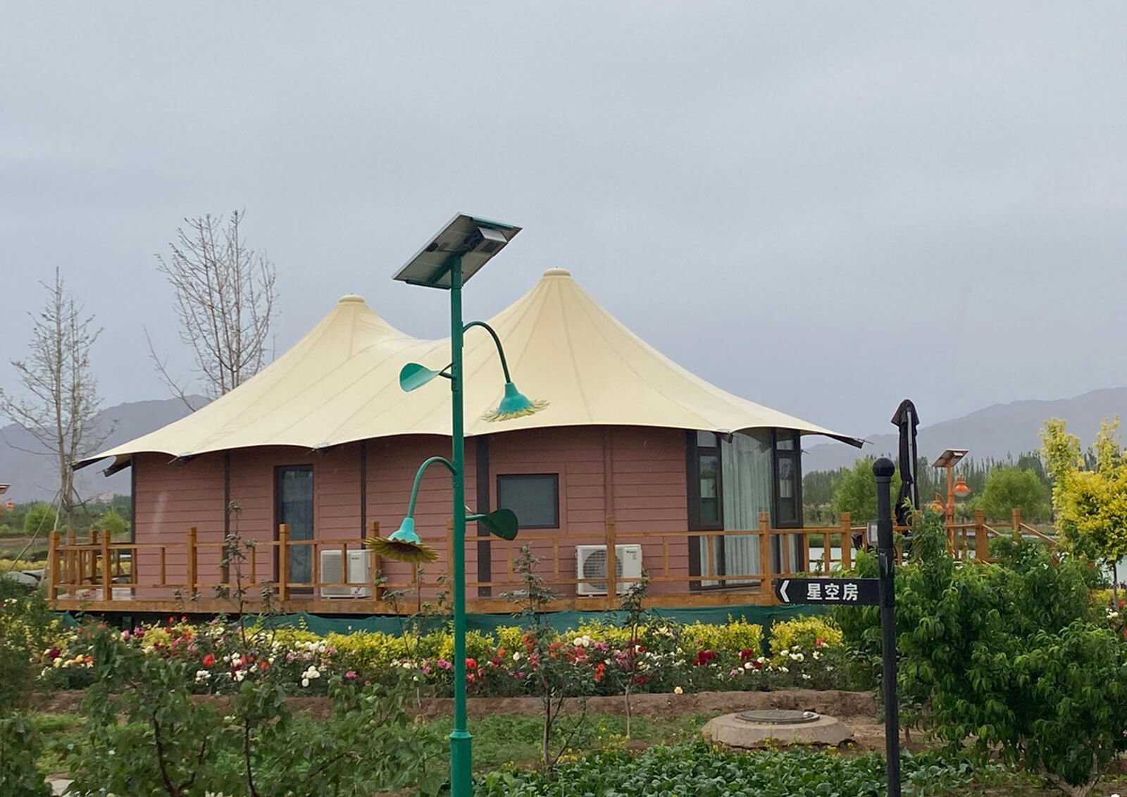 A Tenda Luxo – Gêmeos não só possui um design de estilo único, não podendo destruir o ambiente natural da área cênica, mas também pode construir uma integração perfeita ao ambiente do local do hotel, perfeitamente alinhada com as condições do verde da natureza. ambiente. Ele lidera uma nova direção dos resorts hoteleiros glamping.