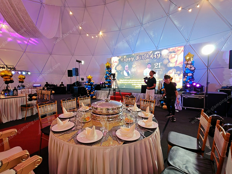 Whether used as a reception area, dining hall, or guest activity center, the geodesic dome tent delivers an impressive atmosphere and enhances the overall glamping experience.