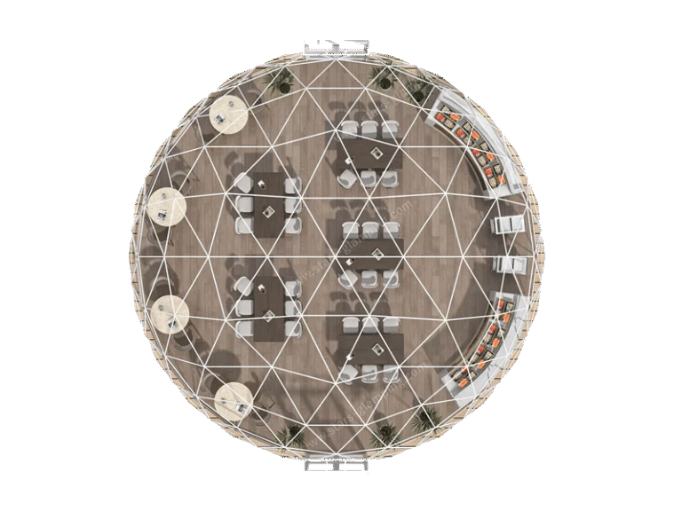 Designed as a reception hall, lounge, or multi-purpose gathering space, this dome tent creates a welcoming environment for hotel guests and camp visitors. Its unique hemispherical structure provides a spacious interior, abundant natural light, and a panoramic view, offering both comfort and style for hospitality projects.