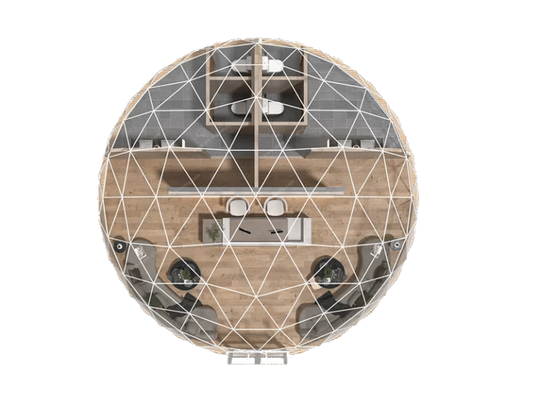 The Geodesic Dome Tent combines modern architecture with practical functionality, making it the perfect choice for glamping resorts, eco-hotels, and luxury campsites. Built with a galvanized steel pipe frame and covered by high-quality PVC knife-coated fabric, the dome ensures excellent stability, waterproofing, and weather resistance, suitable for long-term outdoor use.