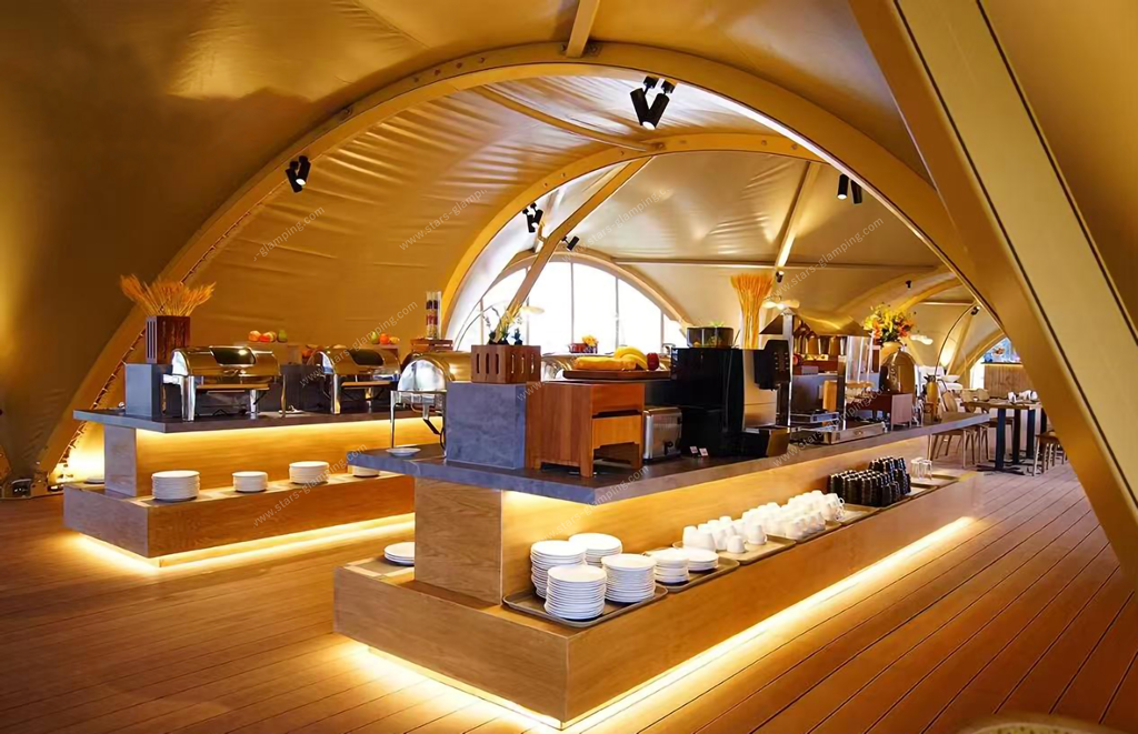 With its spacious, open-plan interior, the Pyramid Tent is perfectly suited for use as a hotel reception hall, fine dining restaurant, banquet space, or event venue. Its modular design allows customized layouts, integrating glass walls, flooring, or lighting to reflect the unique style of your resort.